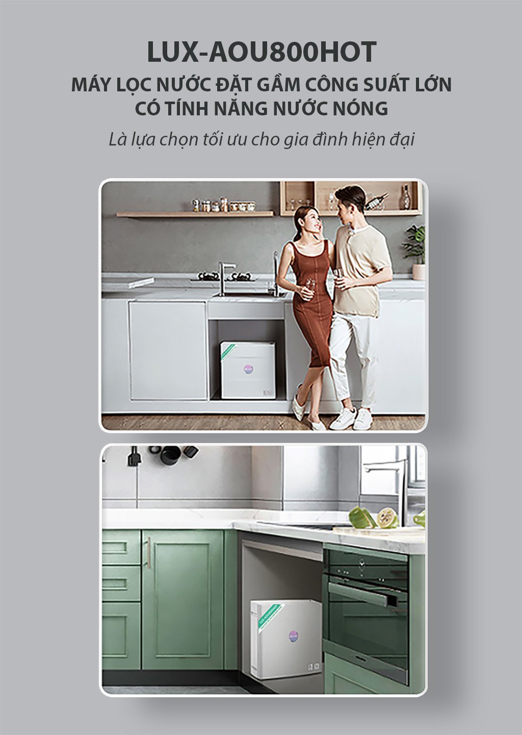 | Vị trí lắp đặt | Đặt gầm, máy đặt thấp hơn vòi, cách vòi khoảng 60-80cm |